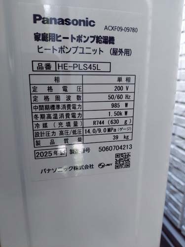 京都市下京区四条通 パナソニック家庭用ヒートポンプ給湯機 ヒートポンプユニットHE-PLS45L エコキュート交換工事|京都エコキュート取り付け工事センター